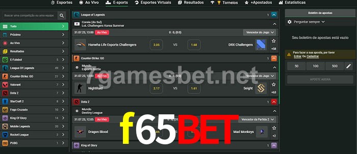 O f65bet oferece uma grande seleção de opções de apostas em e-sports com probabilidades competitivas